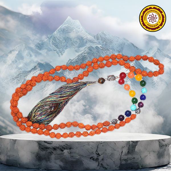 The 7 Chakra 5 Mukhi Rudraksha Mala is a spiritually significant and beautiful mala designed to enhance your meditation practice and promote overall well-being. This mala features 108 beads, each consisting of 5 Mukhi Rudraksha, which are known for their powerful energy and balancing properties. The mala is also adorned with 7 chakra beads representing each of the seven energy centers in the body. These chakras are believed to influence various aspects of physical and mental health, and balancing them can lead to improved harmony and spiritual growth. This mala serves as a powerful tool for meditation, spiritual practice, and daily wear.