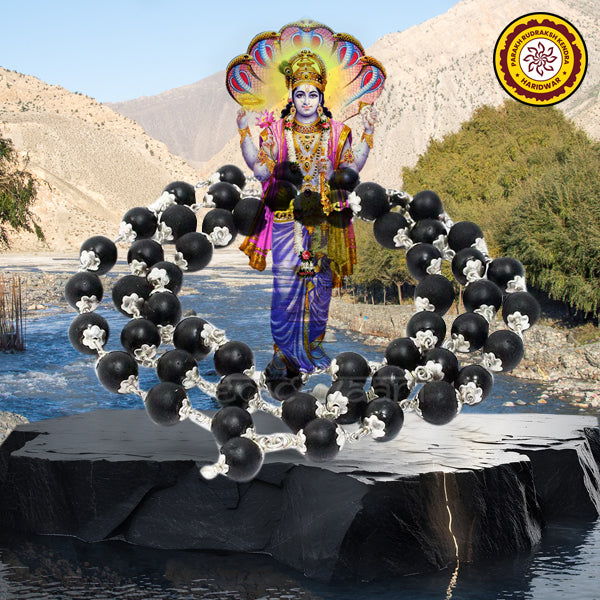 The "Shaligram Mala in Pure Silver" is a sacred and elegant prayer mala crafted with genuine Shaligram stones and pure silver beads. Each mala is meticulously designed to enhance spiritual practice and offer divine blessings. This mala is ideal for chanting mantras, meditation, and spiritual rituals, bringing a touch of sacredness and grace to your spiritual journey.